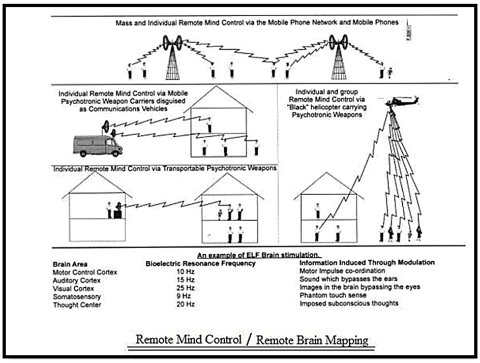 Resimde görüldüğü gibi baz istasyonları aracılığıyla, helikopterler aracılığıyla, anten barındıran casus araçları ile ve maalesef uydular aracılığıyla bile zihin kontrolü yapabilmektedirler. İsterlerse topluluk içindeki sadece bir kişiyi eğer isterlerse de topluluk içindeki birden çok kişiyi aynı anda kontrol edebilirler. Benim de kardeşlerimi ve babamı kontrol ettiklerini bana net olarak gösterdiler. Ayrıca ailemden olmayan iki kişiyi de kontrol ettiklerini bana gösterdiler. Kendimin haricinde toplam 5 kişinin de ontrol edildiğini gördüm. Ama sadece benimle 7 gün 24 saat canıma her an kast edilen sürekli saldırılarla uğraşıyorlar. Targeted Indivudials TI dedikleri gibi sadece hedef seçtikleri birey ile delirticesine ve intihar ettircesine ve acizleştrircesine ve yalnızlaştırırcasına ve itibarsızlaştırırıcasına uğraşıyorlar. Bana bu yüzden zihinden yapılan konuşmalarla direk zihin beyin kontrolünü belli ettiler. Amaçları sadece kobayı-hedef bireyi itibarsızlaştırmak ve testlerini ve egolarını tatmin etmekmiş. Başkalarına belli etmeden zaten ne istiyorlarsa yapıyorlar.