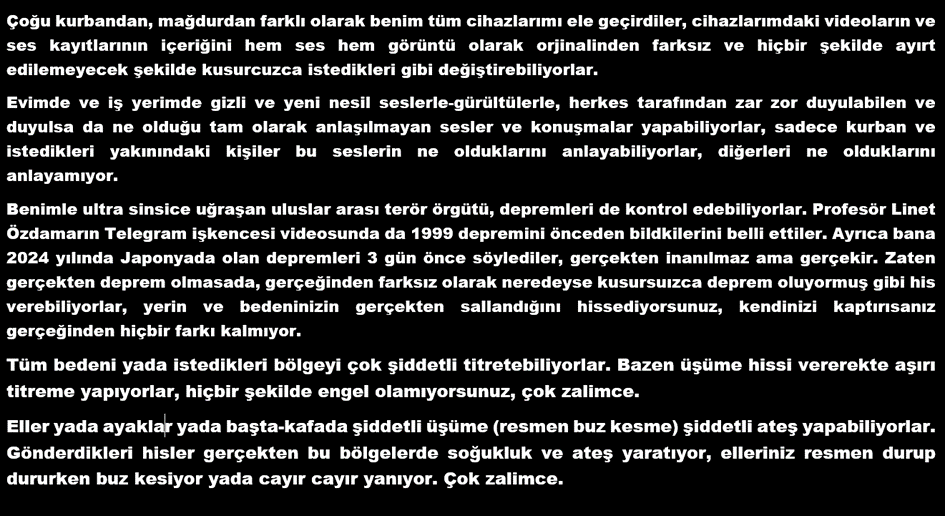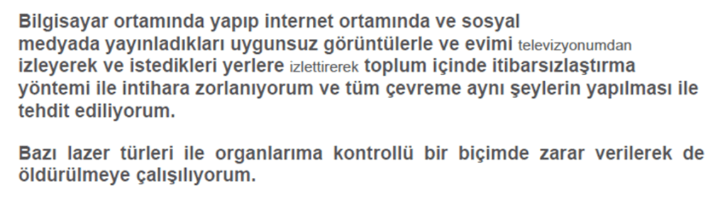 Aşağıda Telegram mağduru İkbal Evyapan ın beyanı bulunmaktadır. Bana ve aileme de lazer ile işkence ettiler.