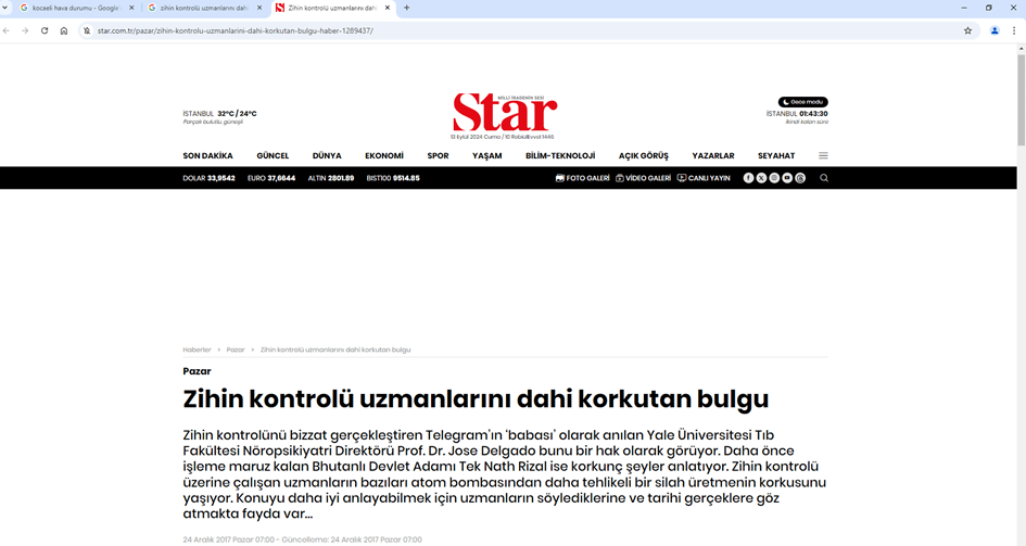 Star gazetesi haberinde zihin kontrolünün atom bombasından bile daha tehlikeli olduğu gerçeği anlatılıyor.