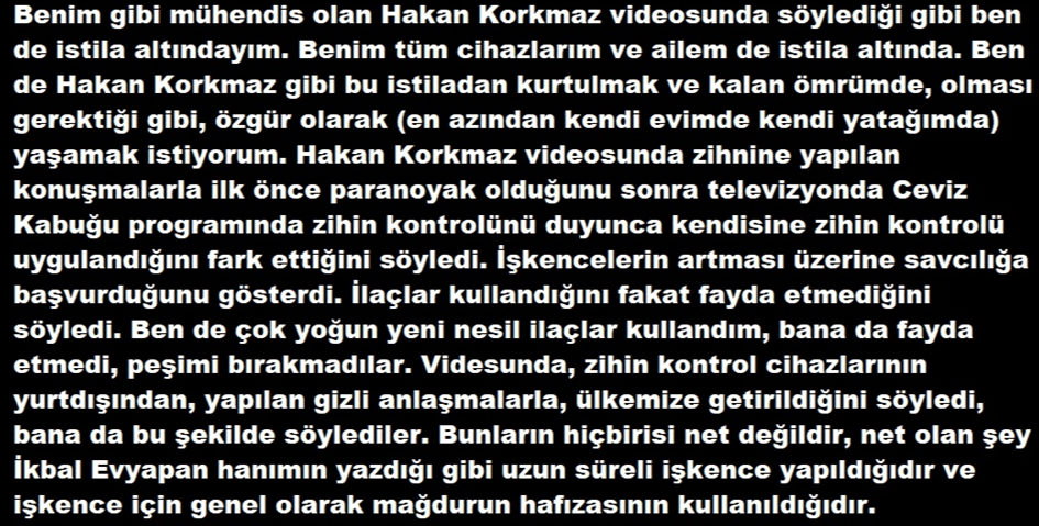 Zihin kontrolü mağduru Mühendis Hakan Korkmazın ifadesi