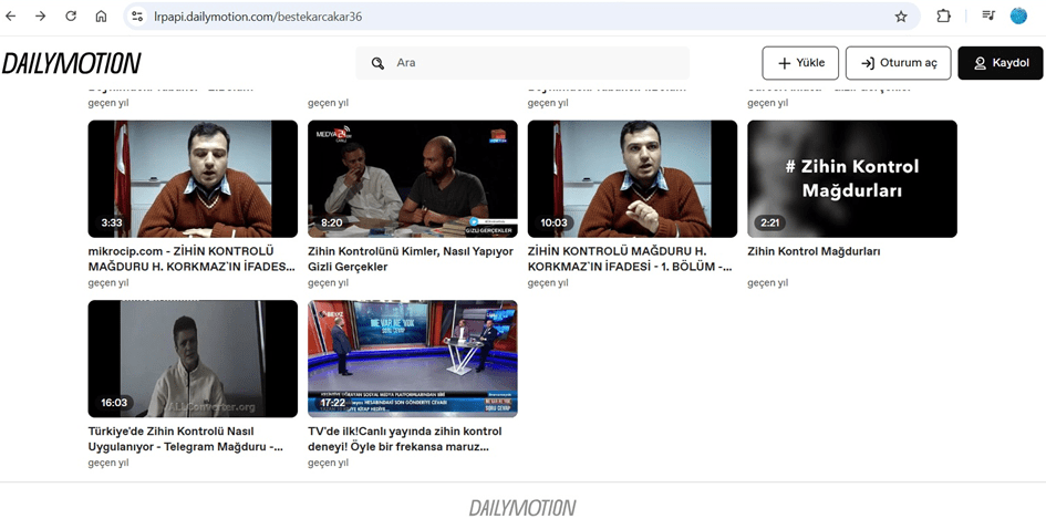 Dailymotion sitesinde https://lrpapi.dailymotion.com/bestekarcakar36 linkinde sayfasında Benim gibi Elektrik elektronik mühendisi olan Hakan Korkmaz’ın ve Edebiyat öğretmeni olan Fatma Asya Budak’ın ve Prof. Linet Özdamar’ın ve canlı yayında zihin kontrolü ile ilgili net bilgiler verilen televizyon programının ve Amerikalı Clair Akwei’in videoları bulunmaktadır. Aslında daha çok video ve daha çok kobay/mağdur vardır ama ben bunları bulabildim. Bu mağdurların anlatıkları benim yaşadığım baskı ve zulümleri doğruluyor, bana yapılan işkencelerle örtüşüyor. Ama benim fark ettiğim en çok benimle en gaddar ve en acımasız şekilde uğraşıyorlar. Hayatımı alt üst ettiler, hala ailem bana inanmıyor, insafa gelip zihin beyin kontrolünü aileme net olarak belli etmediler, zaten ne yaparlarsa yapsınlar yakalnamyacakalarını bildikleri halde gaddarca zalimce sinsice hala en azından aileme bile belli etmediler, hala beni itibarsızlaştırıyorlar ve kaçınılmaz olarak daha da yalnızlaştırıyorlar.