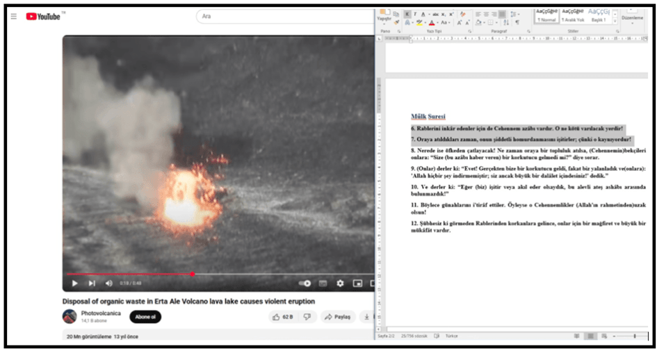 Aşağıdaki resimler youtube daki videolardan alınmıştır, vidoları yavaş hızda oynatınca biraz da dikkat edince ateş içinde, lav içinde, ateş içinde, feryad eden insan suratını ve çok inanılmaz şekilde beliren C harfini görebilirsiniz. Bunları ben yapmadım, nasıl oldular inanınki hiç bilmiyorum. Ben 20 yıl önce bile benimle uğraşan insanların, benimle sinsice uğraşan insanların sonunun Cehennem Çukuru, ateş olacağını ( Cihat ÇıNAR, NAR=Kuranda geçen cehennem ateşi) olacağını söylemiştim, haykırmıştım. Sonra bu volkan çukuru videosunu buldum ve bu feryad eden, anıran insan kafasını ve C harfini 2025 yılında video yavaş oynatma özelliği sayesinde buldum, gerçekten inanılmaz.